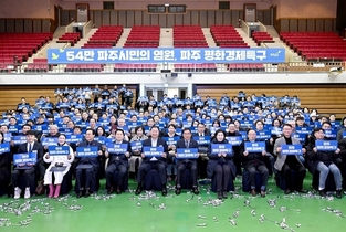 지이코노미 이창희 기자 | 파주시가 16일 파주시민회관 대공연장에서 '성매매집결지 공간 전환 비전 선포식'을 개최하고, 성매매집결지 공간을 시민을 위한 열린 공간으로 조성할 계획임을 밝혔다. 연풍 리본(Re:born)-도시의 기억을 새롭게 엮다는 대주제를 내건 이날 행사는 70여 년 넘게 폭력과 착취, 불법의 현장이었던 성매매집결지 역사를 시민과 함께 성찰하고, 성매매집결지 폐쇄 이후에 이곳을 복지와 문화가 어우러진 열린 도시공간으로 전환해 나가기 위한 파주시의 의지를 공식화하는 자리로 마련됐다. 김경일 파주시장을 비롯해 읍면동 통·이장, 유관단체 관계자, 시민 등 500여 명이 참석한 가운데 열린 행사는 성매매집결지 변화의 필요성과 시민 참여 과정을 소개하는 시작 영상으로 시작해 여성 인권 보호와 반성매매 문화 확산에 기여한 단체와 시민 10명에 대한 유공자 표창 수여, 시민 6인의 수필 낭독 순으로 진행됐다. 낭독 무대에 오른 이들은 '침묵은 허락이고 무관심은 방조', '이제는 시민이 참여할 때'라는 말로 시민의 참여를 호소하며 '성매매집결지는 반드시 폐쇄되어야 한다'는 파주시민의 목소리를 전했다. 이어서 파주시는 비전 영상을 통해 성매매집결지 일대에 대