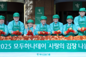 지이코노미 강권철 기자 | 하나금융그룹(회장 함영주)은 하나금융그룹 명동사옥에서 그룹의 아름다운 전통으로 자리 잡은 ESG 대축제 『2025 모두하나데이』의 시작을 알리는 '선포식'과 함께 '사랑의 김장나눔' 행사를 진행했다고 10일 밝혔다. 『모두하나데이』는 지난 2011년 11월 11일부터 시작해 올해로 15번째를 맞이하는 하나금융그룹의 대표적인 ESG 활동으로 2026년 1월 11일까지 약 2개월간 금융의 사회적 책임 이행을 위해 모든 임직원이 다양한 봉사활동에 참여한다. 특히, 올해는 금융지주 출범 20주년 및 은행 통합 10주년을 맞이하여 금융그룹의 사회적 책임에 더욱 힘을 실어 나눔을 실천해 왔으며, 1년간 그룹의 사회가치 성과를 임직원들과 함께 공유하고 취약계층 앞 나눔을 위한 김장 행사를 진행하였다. 이날 행사에는 함영주 회장을 비롯한 각 관계사 CEO 및 임직원, 임직원 배우자들로 구성된 하나가족사랑봉사단이 참석했으며, 하나금융그룹의 진정성 있는 나눔 실천을 함께 하기 위해 배성우 롯데웰푸드 본부장 등 약 250여명이 자리를 함께 했다. 함영주 하나금융그룹 회장은 "포용의 마음으로 진심을 담아 어려운 이웃에게 따뜻한 온기를 전달 하겠다“며 ”