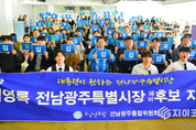 지이코노미 김정훈 기자 | 김영록 더불어민주당 전남광주특별시장 예비후보를 향한 지지 행렬이 광주·전남 지역에서 이어지고 있다. 교수·연구자들의 지지에 이어 21일에는 청년단체와 전남도청 전직 공무원들이 선거사무실을 찾아 공개적으로 힘을 실었다. 청년단체 ‘호남영포럼’은 이날 광주 치평동 선거사무실에서 김 예비후보 지지를 선언하며 “분열이 아닌 통합, 경쟁이 아닌 협력의 시대를 선도할 준비된 행정역량과 소통능력을 갖춘 지도자”라고 평가했다. 호남영포럼은 광주권과 전남권에서 각각 활동하며 청년 정책 연구와 지역 발전 활동을 지원하는 비영리단체다. 이들은 지지 성명에서 “청년이 떠나지 않고 돌아오는 전남광주, 더 많은 기회를 제공하는 통합특별시를 만들겠다는 비전은 우리 요구와 일치한다”며 김 예비후보와 함께 역사적 전환을 실현하겠다는 의지를 밝혔다. 성명 발표에 앞서 김 예비후보와 청년정책 간담회도 진행했다. 또 유창종 전 순천부시장 등 전남도청 퇴직공무원 275명도 같은 날 선거사무실에서 지지를 표명했다. 이들은 김 예비후보가 첨단산업 육성과 지역 균형발전을 선도할 “최적의 초대 전남광주특별시장 후보”라고 강조했다. 이번 지지 선언은 지역 청년층과 행정 전문가들