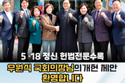 지이코노미 김정훈 기자 | 광주 북구 정치권에서 우원식 국회의장의 개헌 제안과 관련한 항의서한을 둘러싸고 논쟁이 이어지고 있다. 정다은 북구청장 예비후보 등 지역 정치인들은 “5·18 정신의 헌법 전문 수록을 위한 제안에 힘을 보태야 할 때”라며 항의서한 배포를 비판하는 입장을 내놨다. 정다은 북구청장 예비후보와 안평환 광주시의원, 김건안·이숙희 광주시의원 출마 예정자, 고점례 북구의원 출마 예정자, 신정훈 북구의원 등은 12일 공동 입장문을 내고 최근 배포된 항의서한에 대해 유감을 표했다. 앞서 우원식 국회의장은 지난 10일 긴급 기자회견을 열고 오는 6월 3일 지방선거와 동시에 ‘5·18 정신 헌법 전문 수록’과 ‘불법 비상계엄을 막기 위한 개헌’을 골자로 한 국민투표 실시를 제안했다. 이에 대해 이들은 “우 의장은 12·2 비상계엄 사태를 막아낸 국회의장으로서 광주시민의 오랜 숙원인 5·18 정신 헌법 전문 수록을 위해 누구보다 노력해 온 인물”이라며 “그 결단과 의지에 감사의 뜻을 전한다”고 밝혔다. 그러나 지난 12일 ‘더불어민주당 광주북구갑 지역위원장 직무대행 반명환, 광주북구갑 지역위원회를 사랑하는 당원 및 예비후보자 일동’ 명의로 우 의장을 비