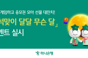 지이코노미 양하영 기자 | 하나은행(은행장 이호성)은 손님들에게 감사의 마음을 담아 민족 대명절인 추석을 맞이하여 지난 23일부터 다음 달 19일까지「추석맞이 달달 무슨 달」이벤트를 실시한다고 밝혔다. 이번 이벤트는 추석 게임 2종과 연계 이벤트 참여 시, 매일 응모권을 모아 원하는 선물을 받을 수 있는 이벤트로 10월 19일까지 약 4주 동안 하나은행 대표 모바일앱 ‘하나원큐’를 통해 참여할 수 있다. 추석 게임 2종은 강강술래를 멈추면 랜덤 응모권을 받을 수 있는 '달과 함께 강강술래'와 달에 숨은 별송이를 찾으면 응모권을 받을 수 있는 '별송이 찾기'이며, 2종의 게임이 격주로 진행된다. 하나원큐 간편인증 로그인을 완료한 손님이라면 누구나 선물 응모에 참여할 수 있다. 게임 후 획득한 응모권은 선물교환처를 통해 각 경품 별 응모권 필요수량 충족 시 ▲로봇청소기 ▲고프로 ▲상품권 ▲커피 ▲캐시 등 총 5종의 경품에 응모할 수 있는 기회를 가지게 되며, 중복 응모가 가능하기 때문에 매일 참여하여 응모권을 많이 모을수록 경품 당첨 확률이 높아진다. 또한, 현재 하나은행에서 진행중인「신규손님 통합 이벤트」에 응모하면 추가로 5장의 응모권을 받을 수 있다.「신규