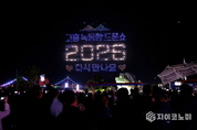 지이코노미 김정훈 기자 | 고흥의 밤하늘이 거대한 공연장이 된 순간이었다. 지난 25일 녹동항 바다정원 일원에서 열린 ‘2025 녹동항 드론쇼’의 대장정 피날레는 그 자체로 고흥 관광 브랜드의 현재와 가능성을 모두 증명한 무대였다. 1500대 군집드론과 200여 대 불꽃드론이 동시에 떠올라 고흥 대표 캐릭터 ‘흥이’, 우주발사체, 유자, 해양관광 콘텐츠 등 고흥의 정체성을 하나의 스토리로 엮어내며 밤하늘에 구현했고, 레이저와 해상 불꽃이 결합된 멀티미디어 연출은 단순한 볼거리를 넘어 관람객의 감정선을 끝까지 끌어올렸다. 올해 4월부터 진행된 녹동항 드론쇼 시리즈는 주말마다 수천 명의 발길을 이끌며 숙박·식음료·체험업 등 지역 상권에 확실한 파급력을 증명했다. 고흥군은 드론쇼를 이벤트가 아닌 '체류형 야간 관광콘텐츠'로 발전시키며, 해양정원 조성사업·우주산업·관광특구 전략과 연결된 중장기 관점의 콘텐츠 산업 기반을 단계적으로 확장 중이다. 이날 행사에서는 드론쇼 사진 공모전 시상식도 함께 열려, 수상자 10명에게 총 400만 원의 고흥사랑상품권이 지급되며 로컬 경제 선순환 구조를 강조했다. 또한 ㈜다온아이앤씨 양찬열 대표, 마린로보틱스㈜ 서경필 이사 등 지역