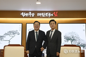 지이코노미 정길종 기자 |김태흠 충청남도지사와 이장우 대전광역시장은 24일 충남도청 도지사 접견실에서 비공개 회동을 갖고, 대전·충남 행정통합의 추진 방향과 향후 과제에 대해 심도 있는 논의를 진행했다. 이날 회동에서 두 단체장은 중앙정부 주도의 성장 전략이 수도권 일극체제라는 구조적 한계를 드러내고 있다는 데 공감하며, 이를 극복하기 위한 대안으로 대전충남 행정통합이 선도적으로 추진될 필요가 있다는 점을 재확인했다. 김 지사와 이 시장은 대전·충남 통합이 정치적 유불리를 떠나 충청의 미래와 국가 균형발전을 위한 대의에 기반해야 한다는 데 뜻을 같이하며, 오로지 지역의 장기적 발전을 목표로 통합을 추진하겠다는 의지를 밝혔다. 김태흠 지사는 “이재명 정부 역시 수도권 일극체제 극복과 국가 성장 구조 재편이라는 차원에서 대전충남 행정통합을 적극 지원하겠다는 입장을 밝힌 바 있다”고 언급했다. 이어 “그동안 행정통합에 소극적이던 민주당이 대통령 발언 이후 적극적인 태도를 보이는 것은 환영할 일”이라면서도 “내년 지방선거를 앞둔 정치적 셈법이 개입된 것은 아닌지 우려되는 만큼, 보다 진정성 있는 접근이 필요하다”고 말했다. 또한 김 지사는 최근 여당 차원에서 새로운